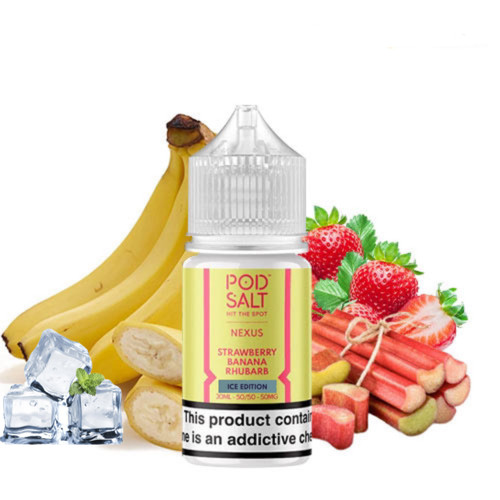 پاد سالت طعم توت فرنگی موز ریواس یخ | Pod Salt Strawberry Banana Rhubarb Icd Editionناموجود پاد سالت طعم توت فرنگی انبه هلو | podsalt peach Mango Strawberryناموجود