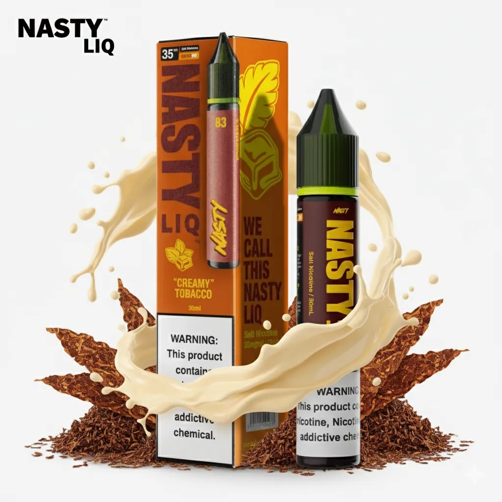 اگه دنبال یه سالت تنباکویی هستی که نه تلخ و خشک باشه نه زیادی شیرین، بلکه یه تنباکوی گرم و عمیق با لایه ضخیم وانیل خامهای و کرهای داشته باشه، دقیقاً رسیدی به Nasty Creamy Tobacco (از سری Tobacco و گاهی با نام Silver Blend هم شناخته میشه). ترکسیگاریها و ویپرهای حرفهای فقط همینو میزنن و میگن: «دیگه هیچ تنباکویی به گرد پاش نمیرسه!»