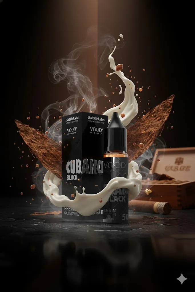 سالت نیکوتین VGOD Cubano Black با طعم توباکو و کاستارد وانیلی، نشان‌دهنده تعادل عالی بین طعم غنی توباکو و شیرینی ملایم کاستارد